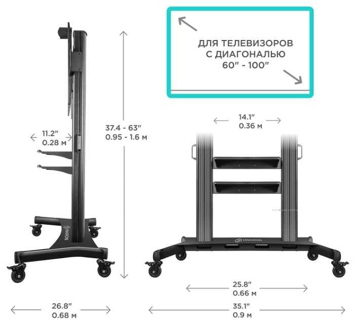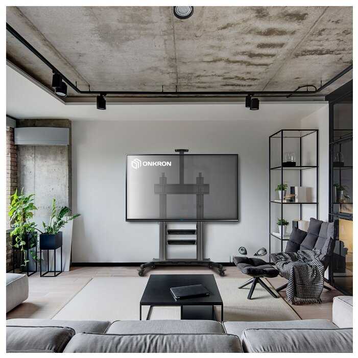 Отличная крепкая стойка. Повесил на неё телевизор LG 79 дюймов (2 метра диагональ). нижняя платформа раздвигается, телевизор не...