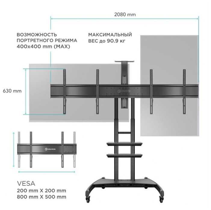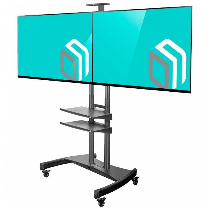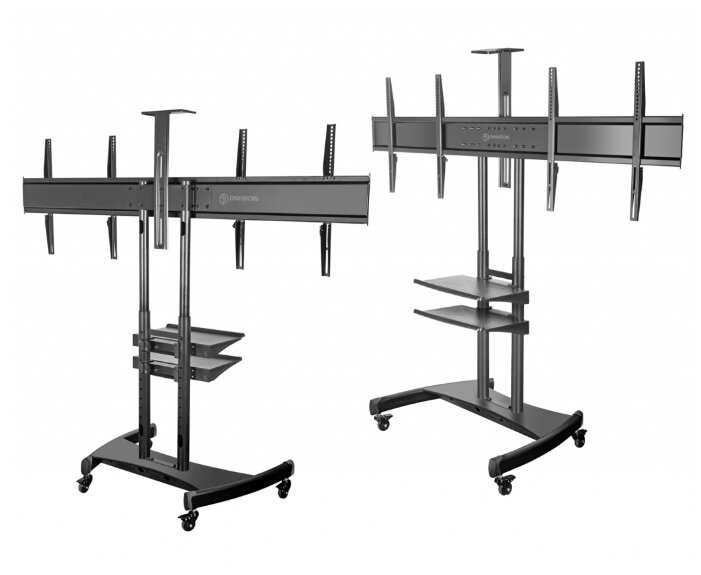 Стойка рассчитана на два монитора 65" и весом каждого монитора до 65 кг. Для офисного использования или магазина . Можете спокойна приобретать под телевизоры до 120" , спокойно выдержит и легко и безопасно с ним будет перемещаться.