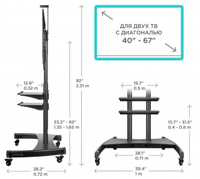 Лёгкость перемещение с места на места с 98" (249 см) телевизором.