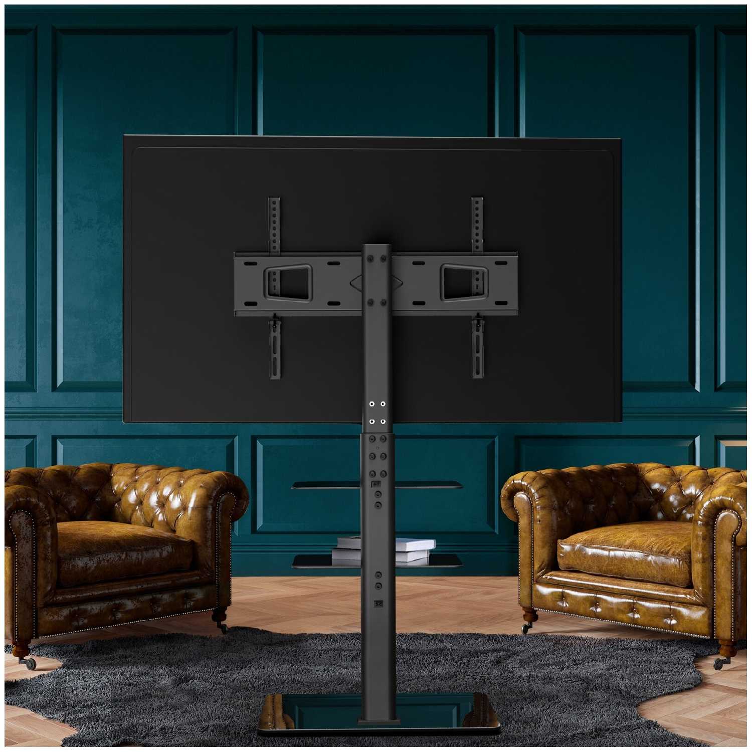 Конструкция обеспечивает оптимальную эргономику за счет регулируемой высоты (диапазон 60-100 см по отзывам), что устраняет дискомфорт в шее при длительном просмотре. Однако отмечается фиксированный отступ от стены минимум 20 см, что может быть критично для малогабаритных помещений. Телевизор крепится через систему VESA-рельсов с компенсационным люфтом, позволяющим микро-корректировки, но ограничивающим наклон по вертикали. Весовая нагрузка распределена на усиленную треногу с прорезиненными опорами, выдерживающую модели до 65" (30-35 кг), хотя предельная устойчивость достигается только при центровке.