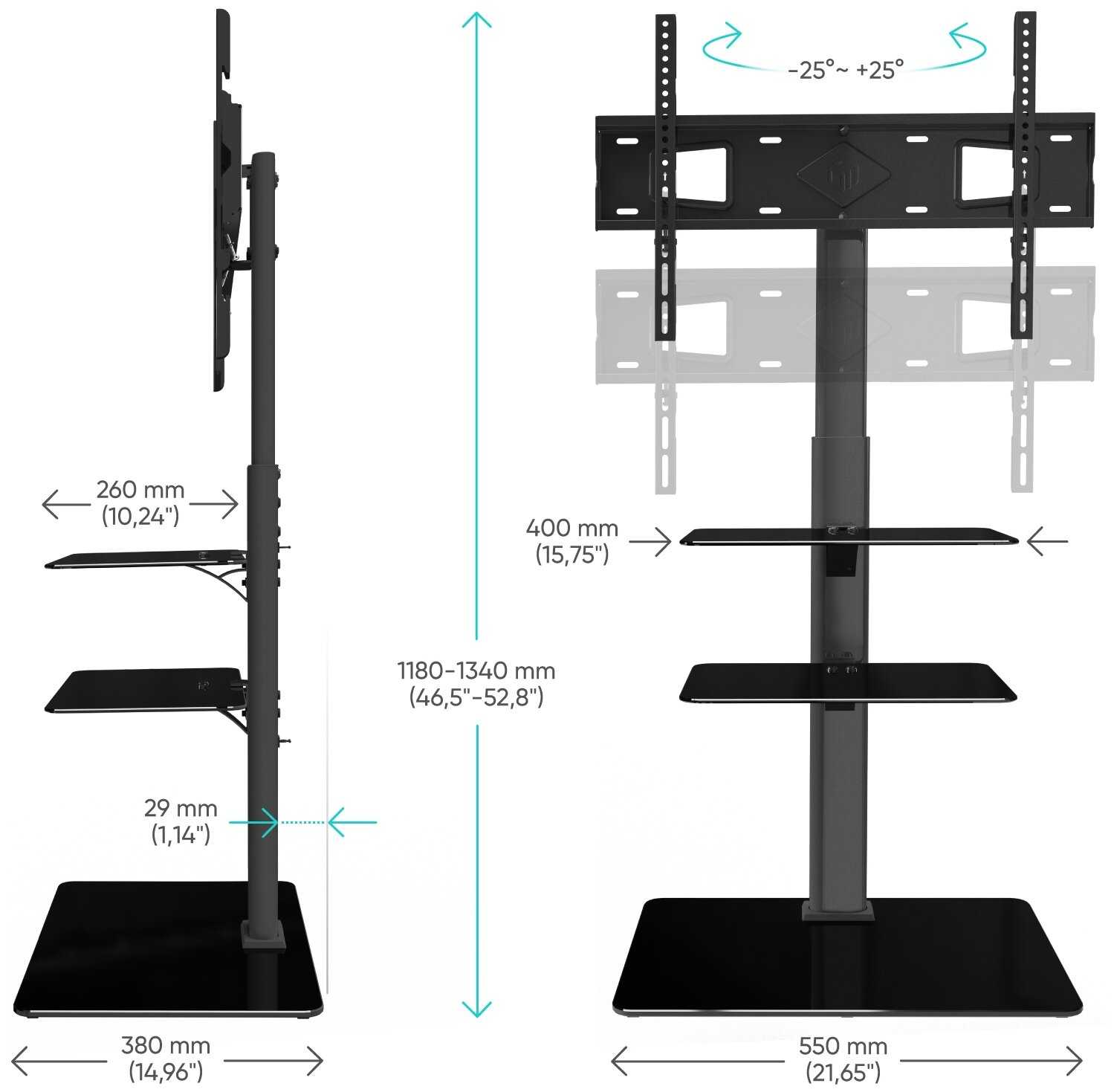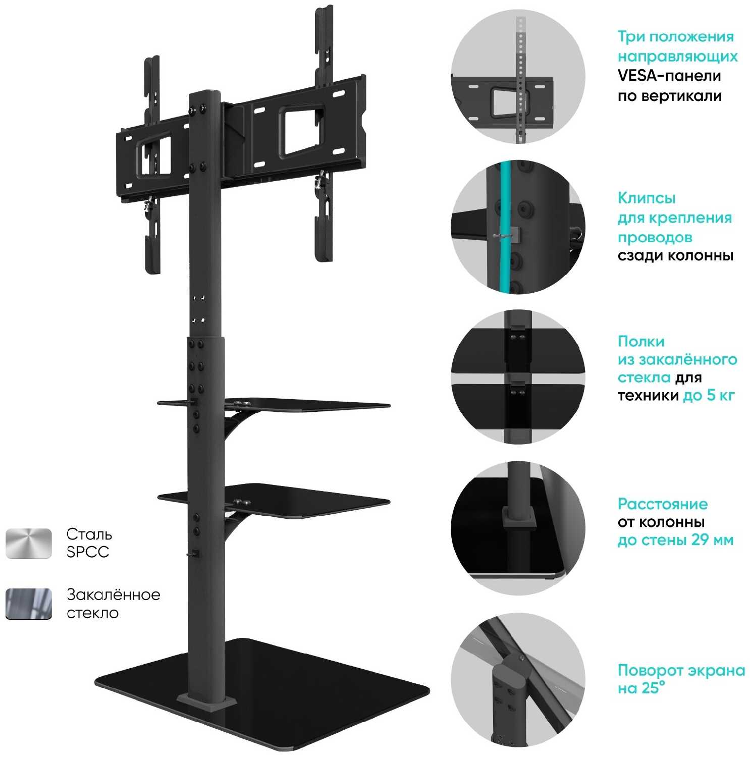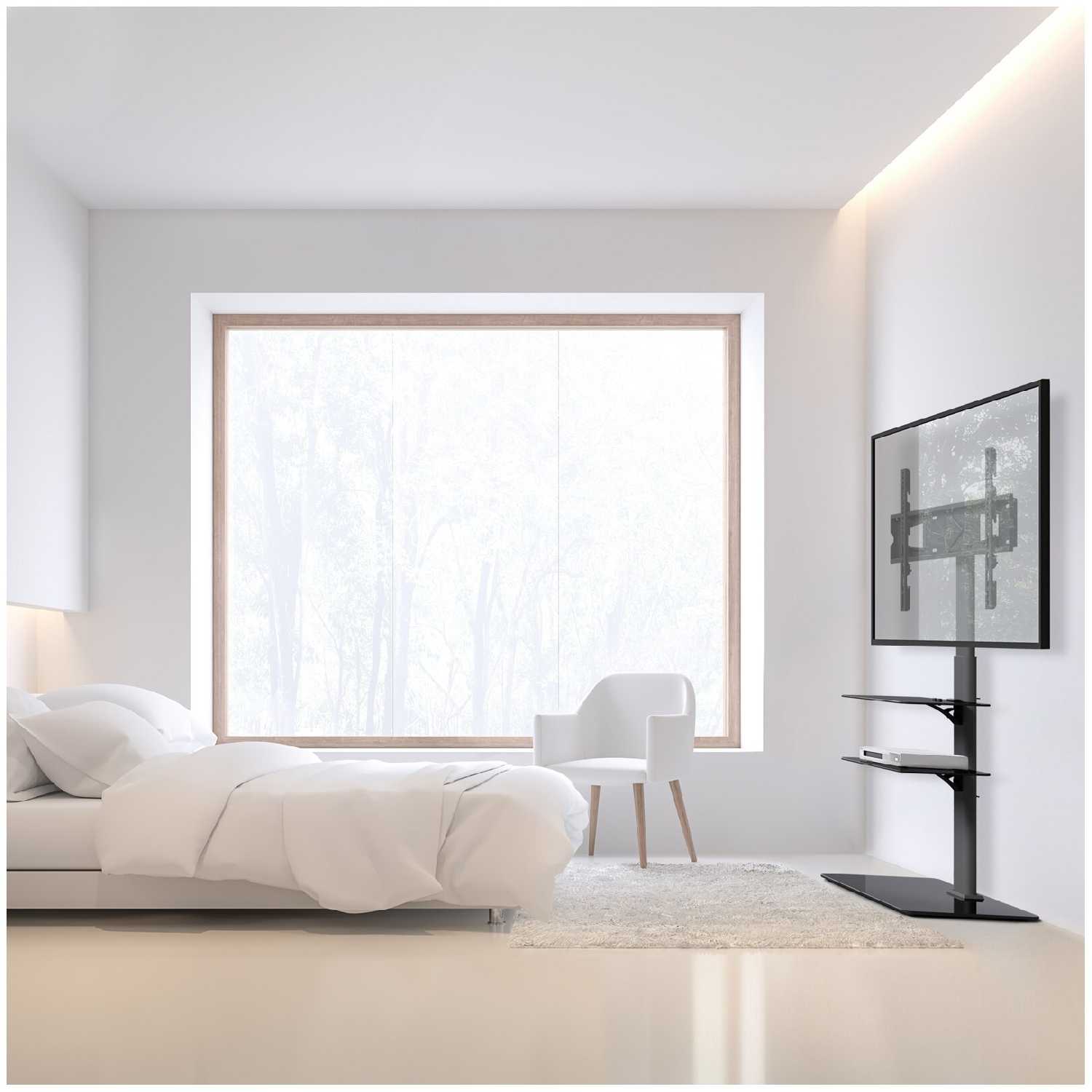 - Обеспечивает комфортный просмотр из разных точек комнаты без смещения стойки.