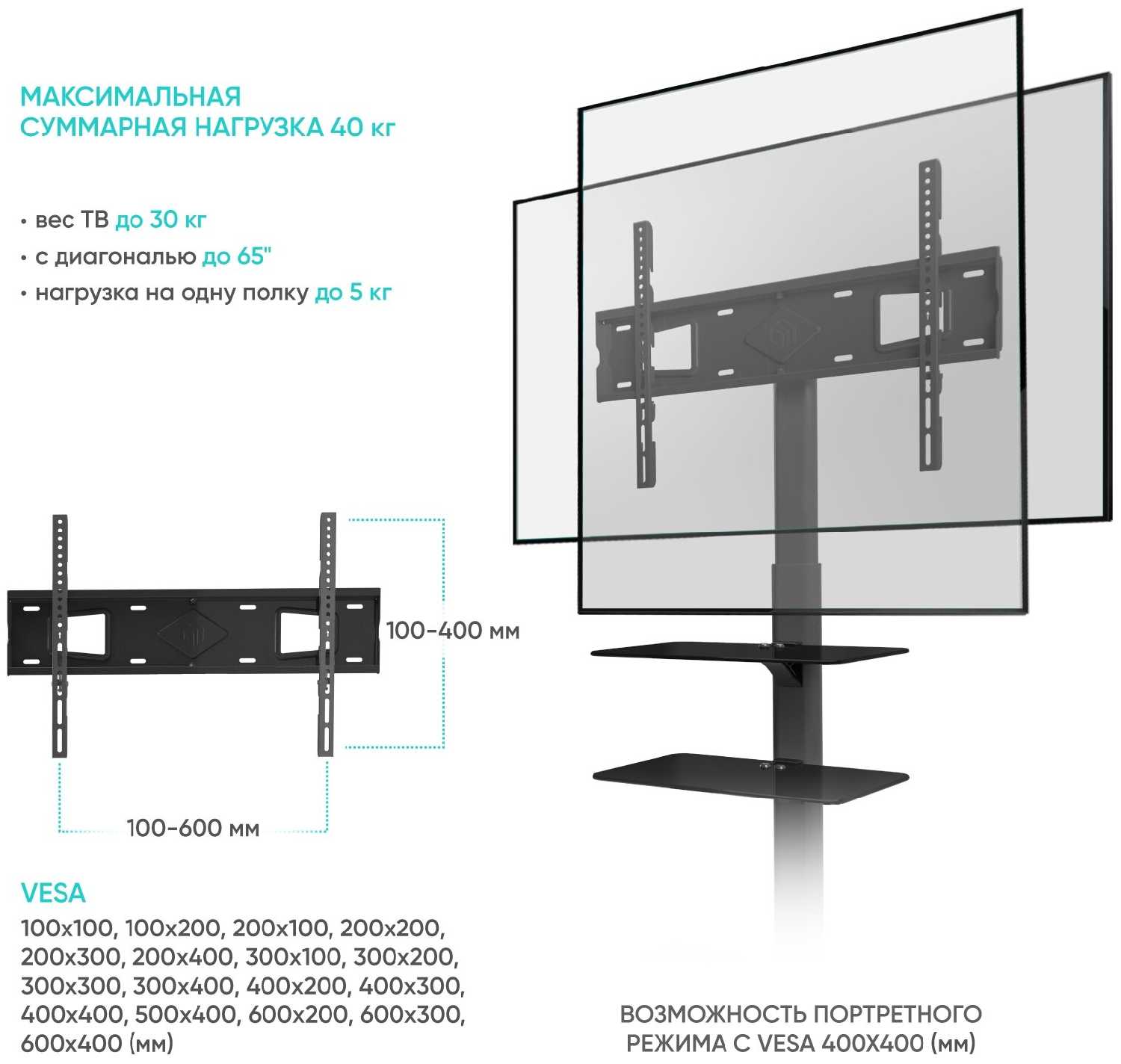 - Конструктивно не предусмотрены шарниры наклона в VESA-креплении.