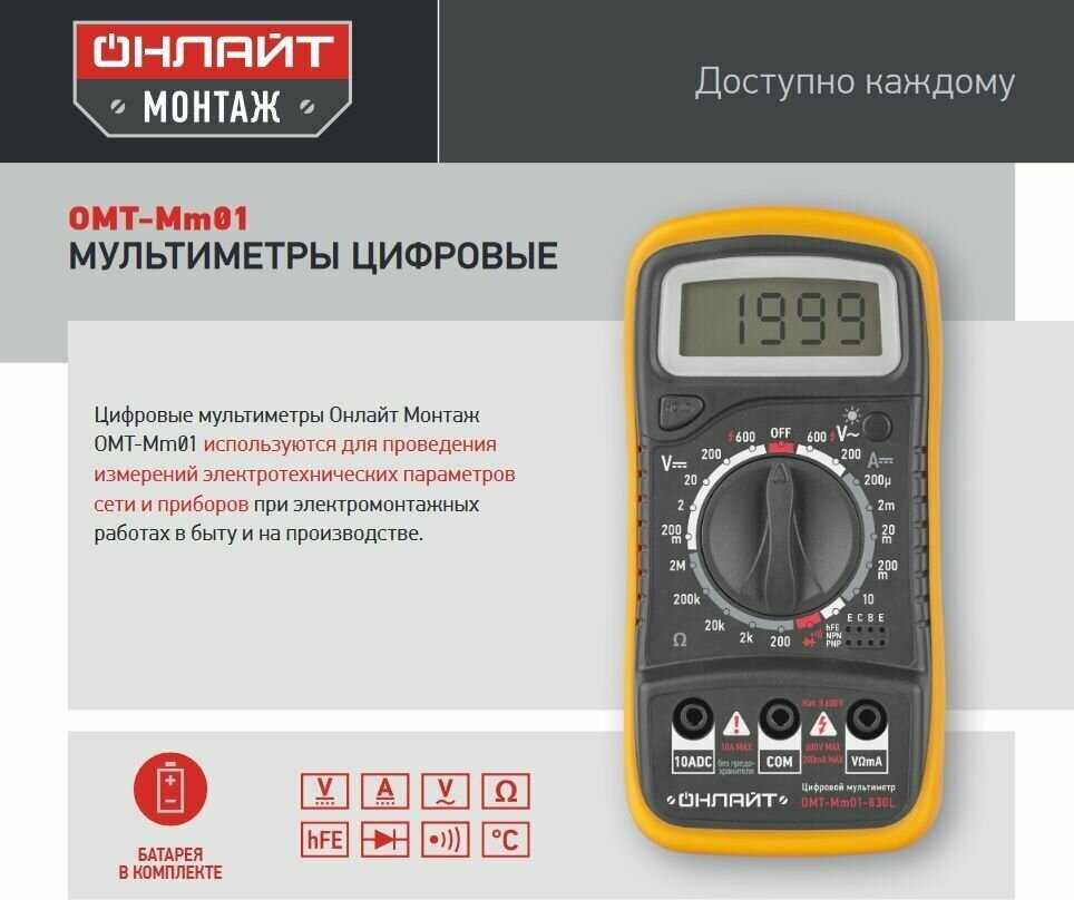 | Дополнительная информация : | Мультиметр онлайт 90 080 ОMT-Mm01-830L (830L) |