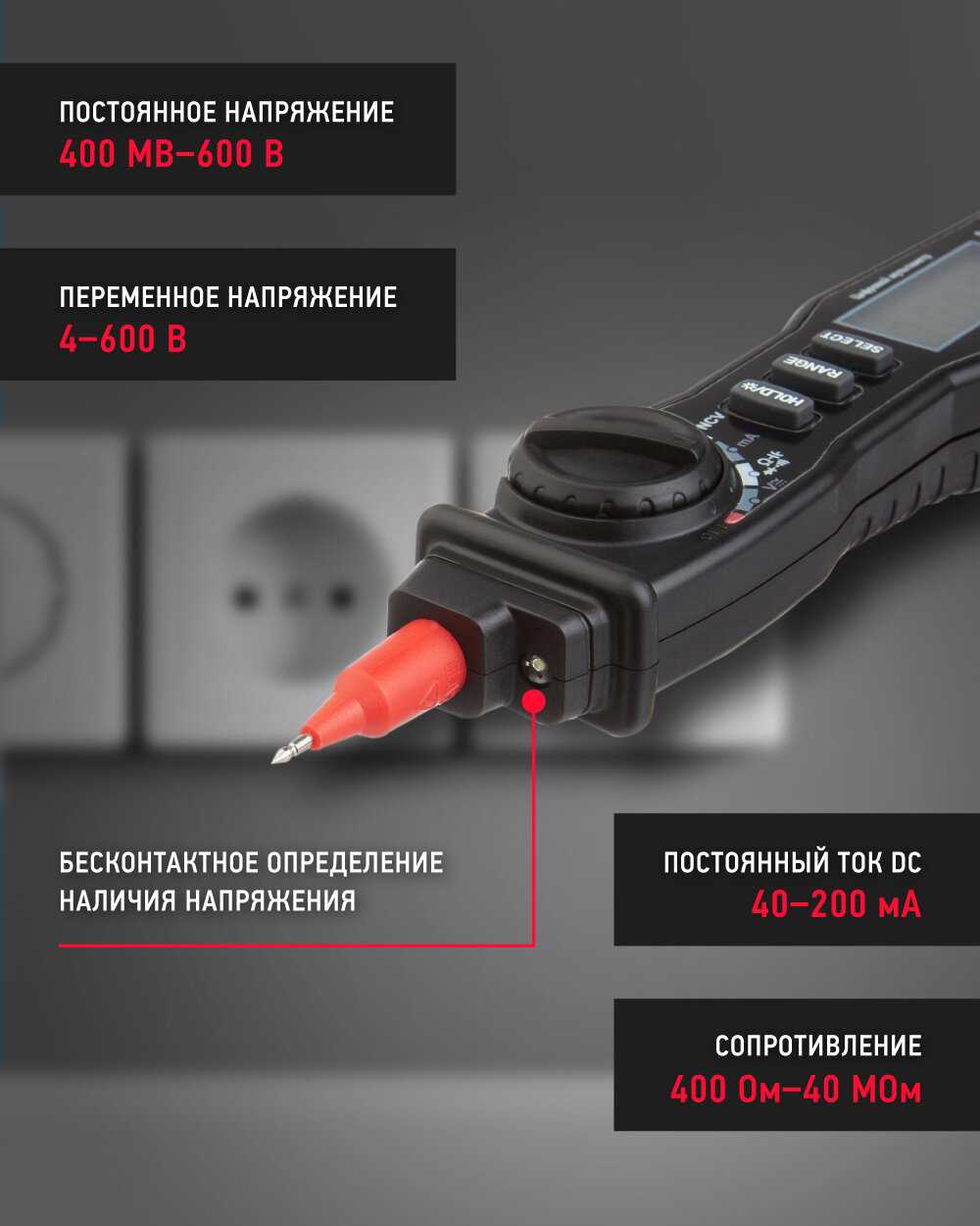 - + Есть ручной выбор предела измерения. Иногда этого не хватает. Есть подсветка экрана и щупа. Иногда это полезно.