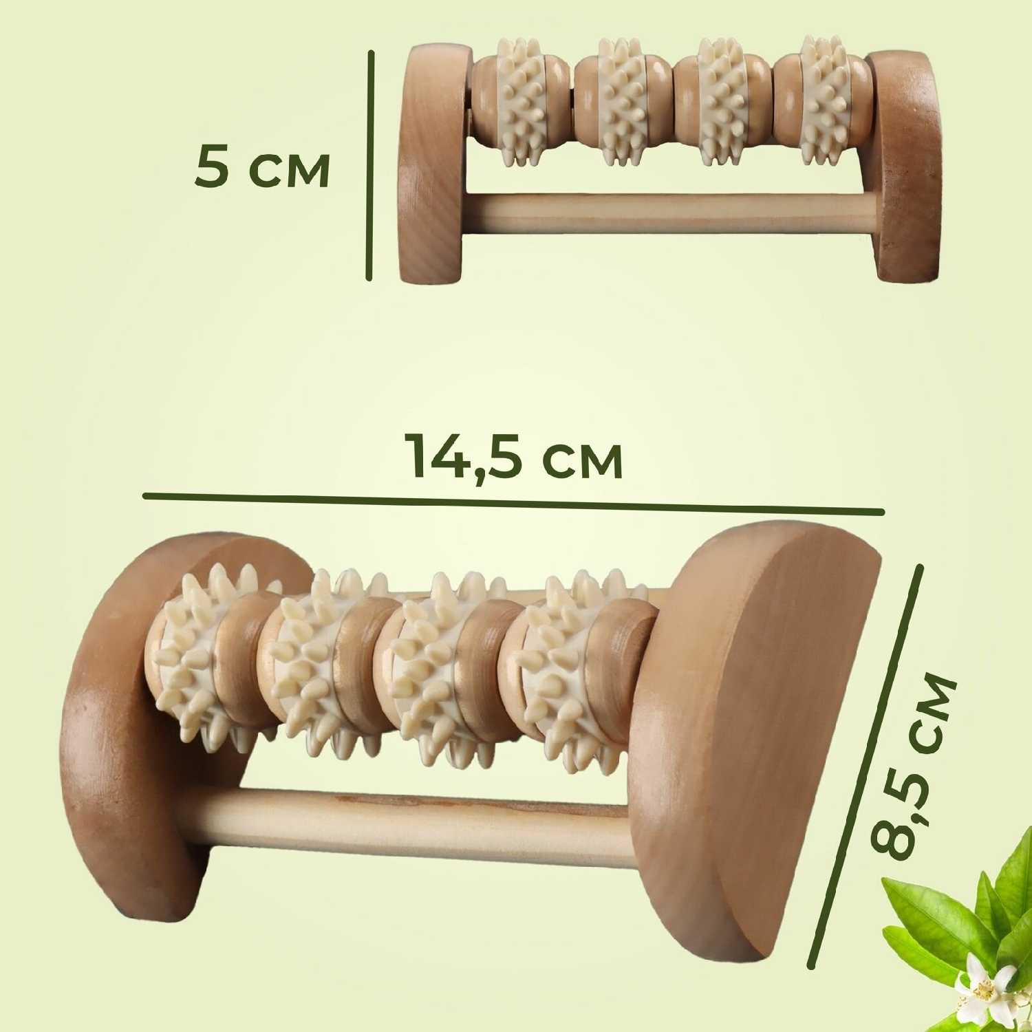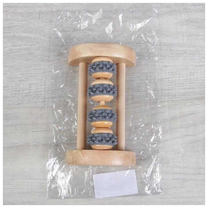| Дополнительная информация : | Этот массажёр отлично подойдёт для расслабления мышц ножек после активного дня и физических нагрузок. Он улучшает кровообращение, убирает отёки и успокаивает благодаря деревянным барабанам с шипами. Также массажёр можно использовать для других частей тела: руки, спина, шея. Прекрасный аксессуар, который подойдёт в качестве полезного подарка с заботой о здоровье или для бани. После горячего воздуха тело распаривается, расслабляется, и массажёр-барабан дополняет эффект расслабления и отдыха тела и мышц. А также помогает избавиться от дискомфорта и лишней жидкости в организме. |