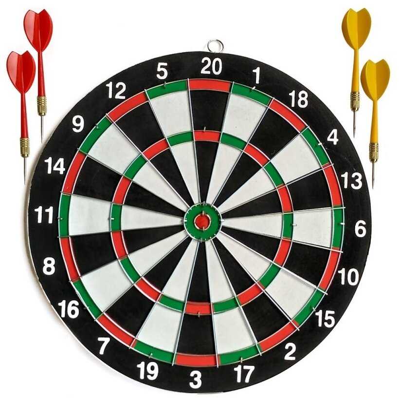 Дартс бюджетный, слишком толстые грани между полями. Если отдельно приобрести потолще дротики, то проще кидать и попадать в цель.