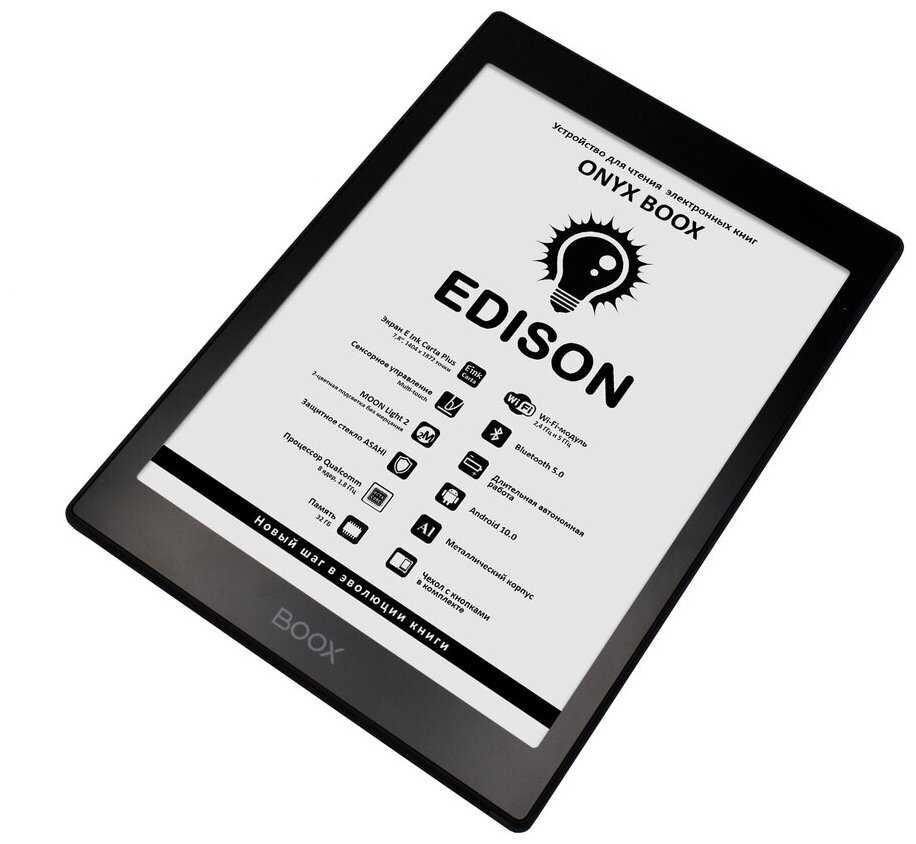 Поскольку читалка на 10 дюймов мне не актуальна, выбрал модель Edison. Выбором доволен. Благодаря Андроиду, можно скачать и ЛитРес, и Букмейт, что для меня критично. По интерфейсу и цветопередаче эти приложения для E-Ink не очень оптимизированы, но текст читается отлично. И это главное.