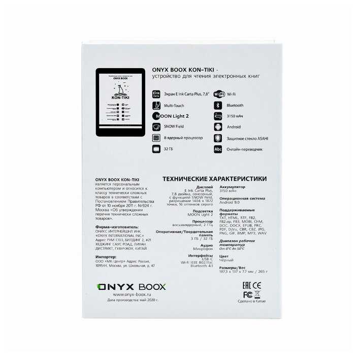 Приобретена взамен старенькой книжки onyx boox aurora. Долго выбирала и все таки решила выбрать эту модель onyx boox. Книга улет очень и очень понравилась, проста в использовании, экран читалки большой почти полноценный книжный (поэтому пал выбор на Kon-Tiki), в отличие от старнеькой авроры шустрая, полный сенсор, легкая и тонкая, в комплекте чехол (простой и довольно таки не плохой), с непривычки- если случайно касаешься стекла, быстро перелистывает страницы, так как края книги не широкие надо привыкнуть. Для выхода в интернет использовать не планирую, но подключилась к wi- fi очень быстро, подсветка регулируется (есть теплый и холодный свет), книги размещает по алфавиту (что очень удобно, есть поиск книг в библиотеке), заряд держит долго, впрочем как и старенькая аврора (проработав почти 10 лет и продолжает работать дальше). Покупкой очень довольна это же ONYX Boox!