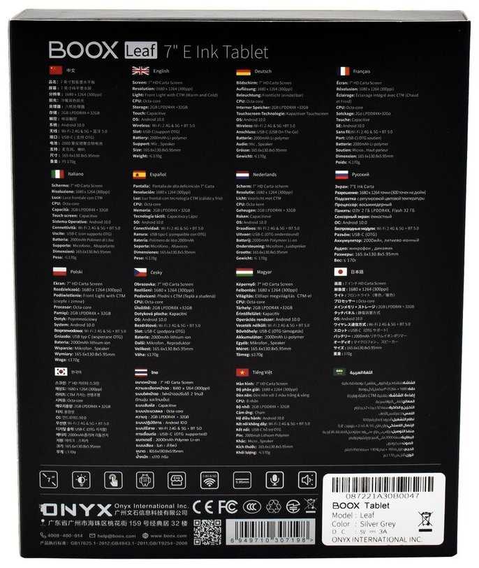 Характеристи ONYX BOOX Leaf
