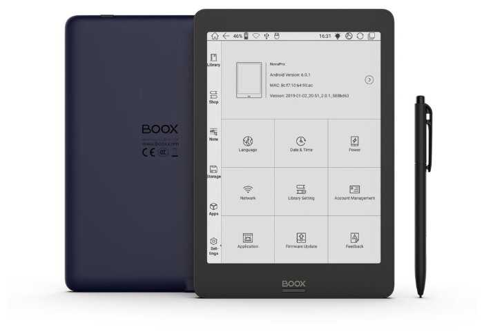- + -Экран. Большой, переход с 6 дюймов очень ощущается, регуляция температуры подсветки радует. Экран полностью закрыт стеклом, пользоваться удобней, чем экраном, утопленным в рамки. - Производительность. Наконец можно комфортно работать не только с программами-читалками книг, но и с такими приложениями, как словари, переводчики, облачные сервисы, сервисы заметок и rss-ридеры. - Отсутствие ограничений памяти на установку приложений, теперь вся внутренняя память доступна для установки. - Анроид 6, достаточно современный, гораздо лучше стандартного 4.4 на других книжках - Хорошая автономноть, видимо из-за более нового андроида - Стилус. Очень удобно для меня, наконец-то можно удобно выделять цитаты для сохранения, или слова/предложения для перевода - Wi-Fi и Bluetooth. Можно подключить по Bluetooth наушники/колонку и слушать аудиокниги. Программу для аудио надо из маркета будет поставить