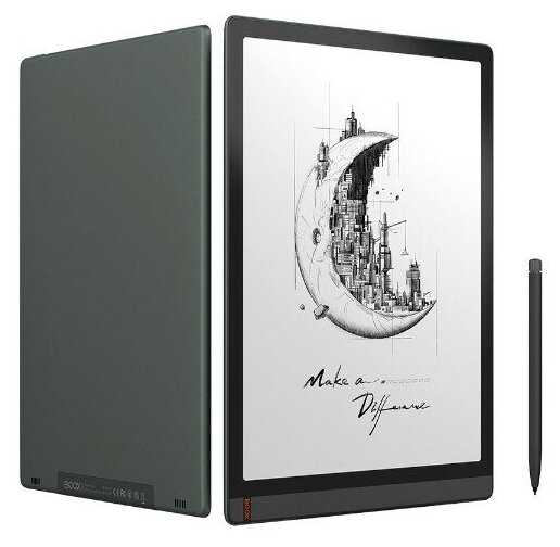 * Черно-белый экран низкой плотности пикселей (207 dpi) и низкого разрешения 2200x1600, который много лет ставится в модели 13,3" OnyxBoox.