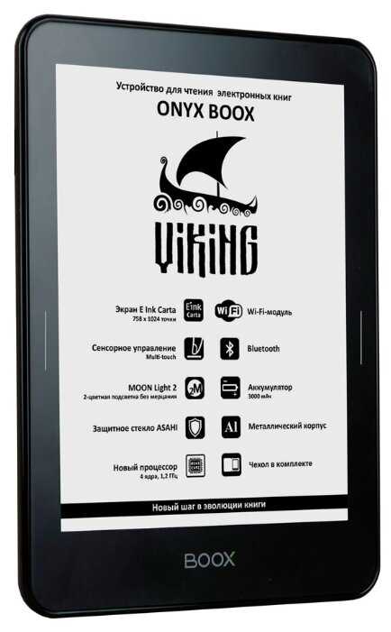 - + очень стильная, есть обложка, оптимальный размер, доступная по цене, долго держит заряд, загружается достаточно быстро,поддерживает многие форматы, можно слушать аудиокниги через наушники ( подключаются по блютув), прочный корпус и защитное стекло.