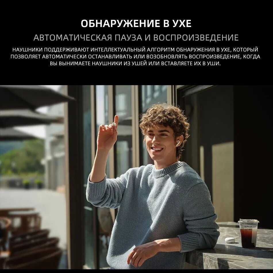 - Датчик присутствия автоматически ставит музыку на паузу при извлечении наушника из уха.