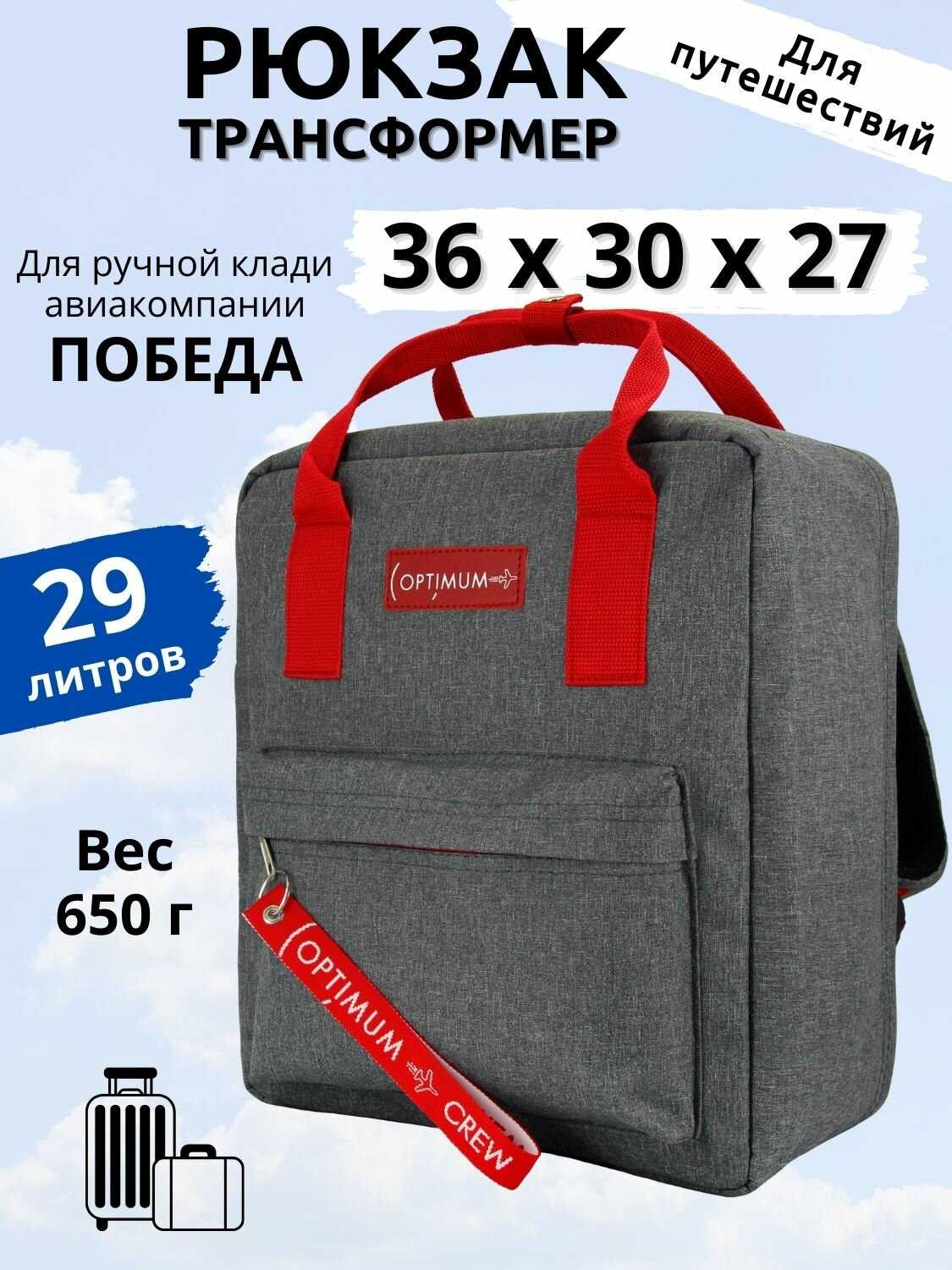 Обзор Optimum Crew Рюкзак сумка дорожная ручная кладь 36х30х27 - мнение пользователей*: