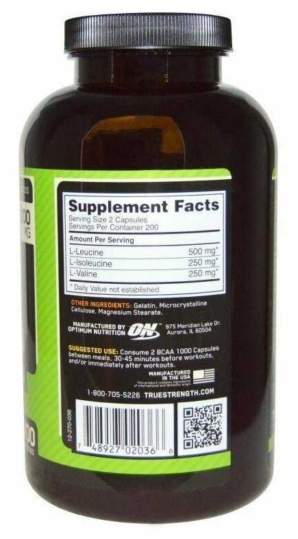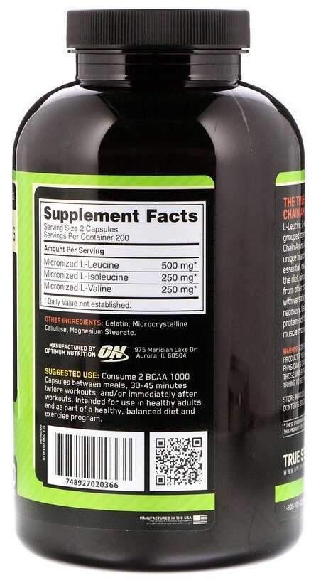 ВСАА 1000 состоит из трех аминокислот с разветвленными боковыми цепочками (L-валина, L-изолейцина и L-лейцина), которые увеличивают мышечные массу и размер. Так как обмен БЦАА происходит непосредственно в мышце, они могут улучшить удерживание азота, в то время как другие аминокислотные группы будут отвечать за процесс восстановления.
