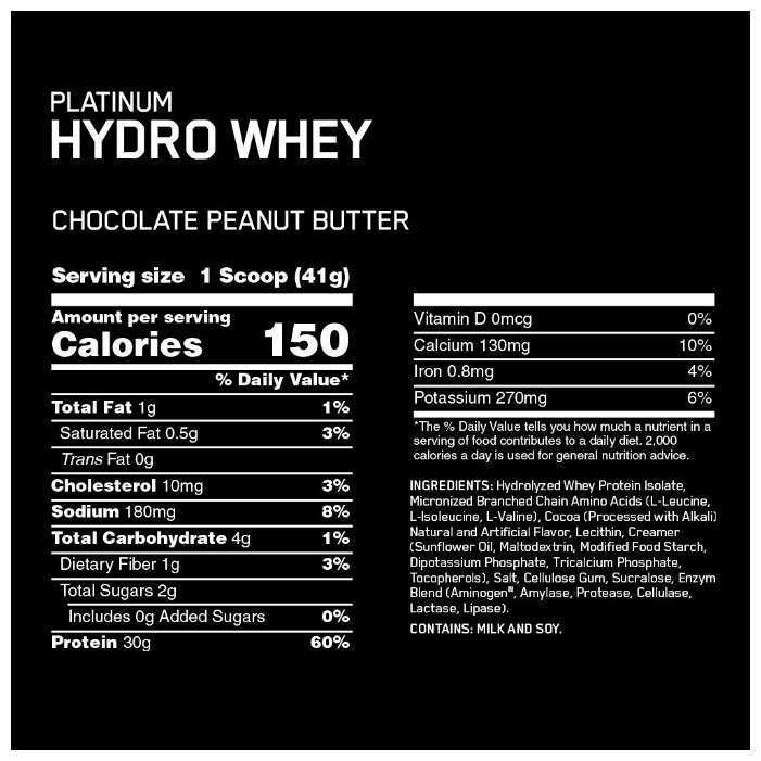 Характеристи Optimum Nutrition Platinum Hydro Whey