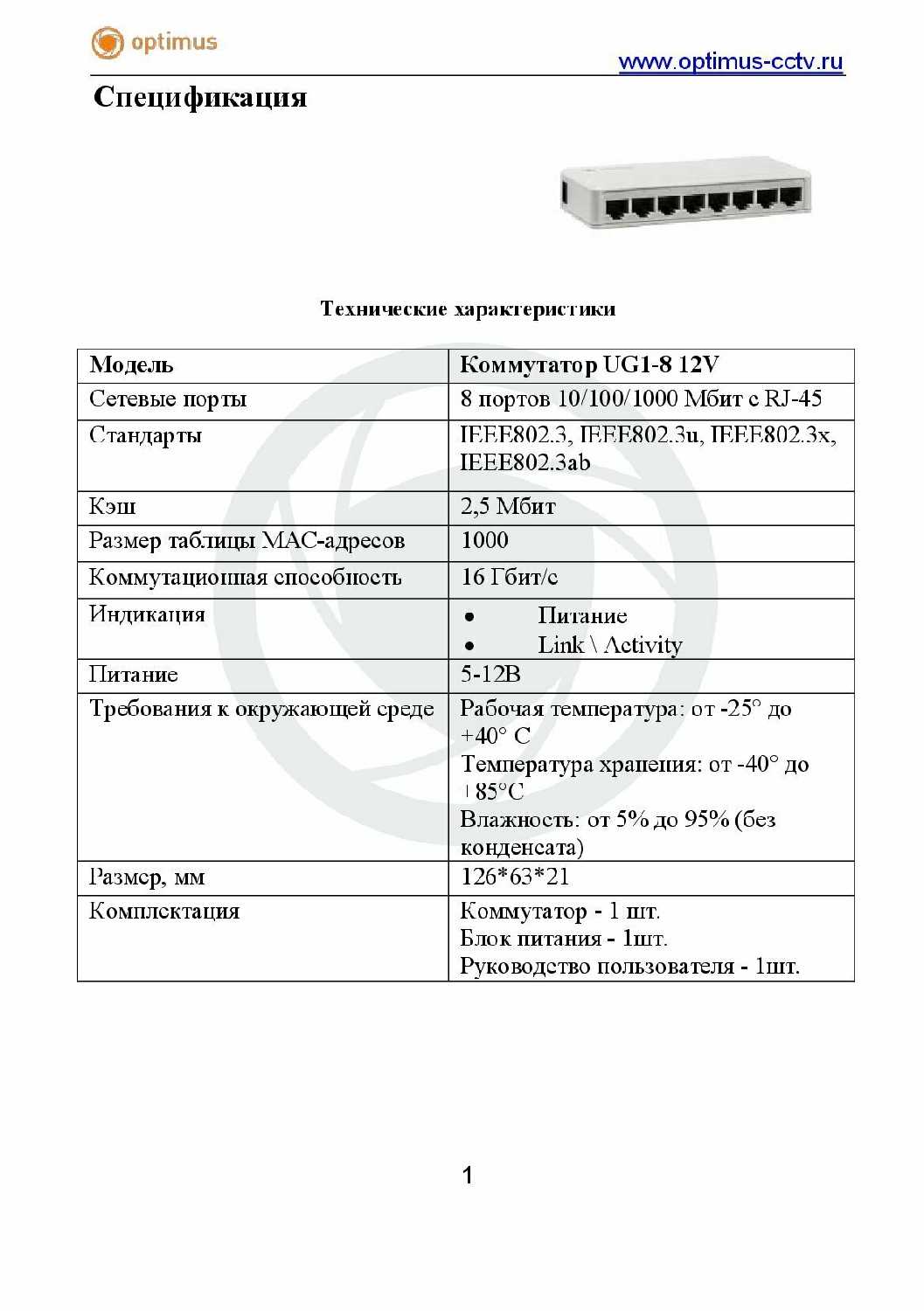 Отзывы о Коммутатор Optimus UG1-8 12V