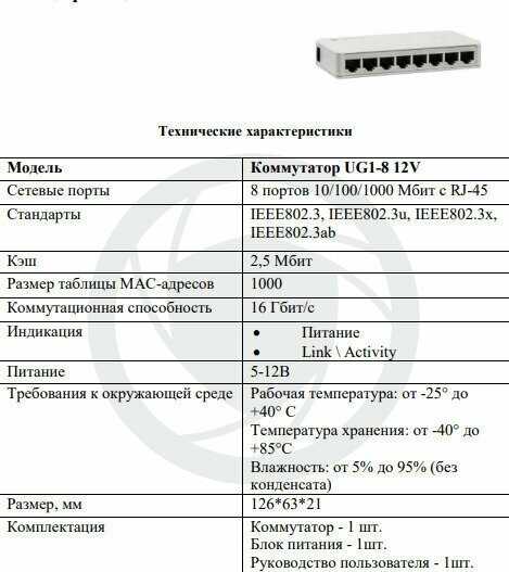| Дополнительная информация : | Коммутатор – 1шт, Блок питания – 1шт, Руководство пользователя – 1шт |