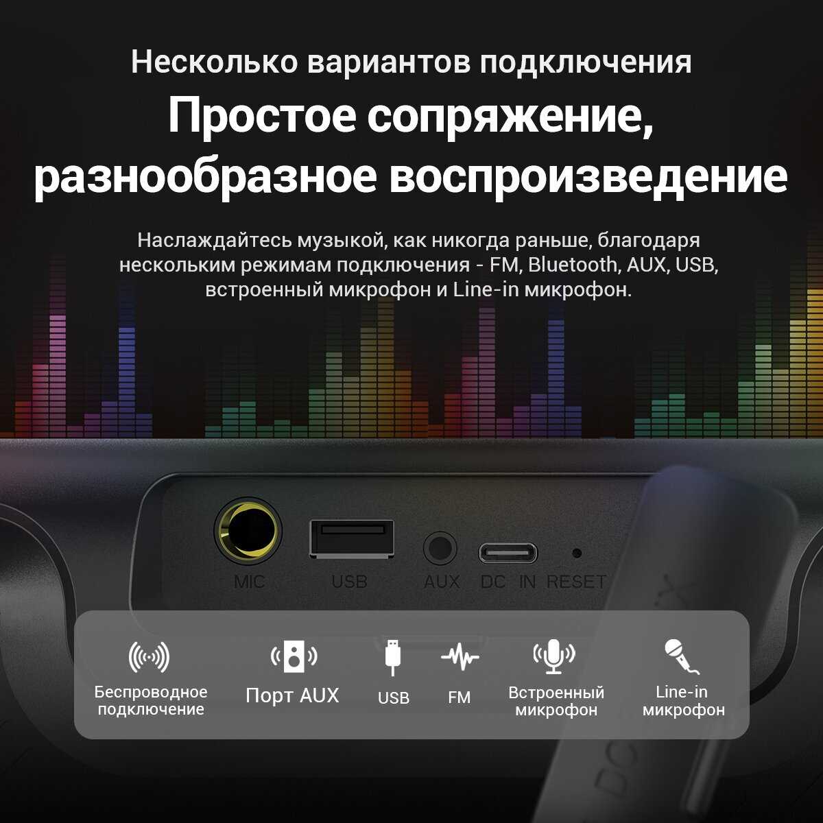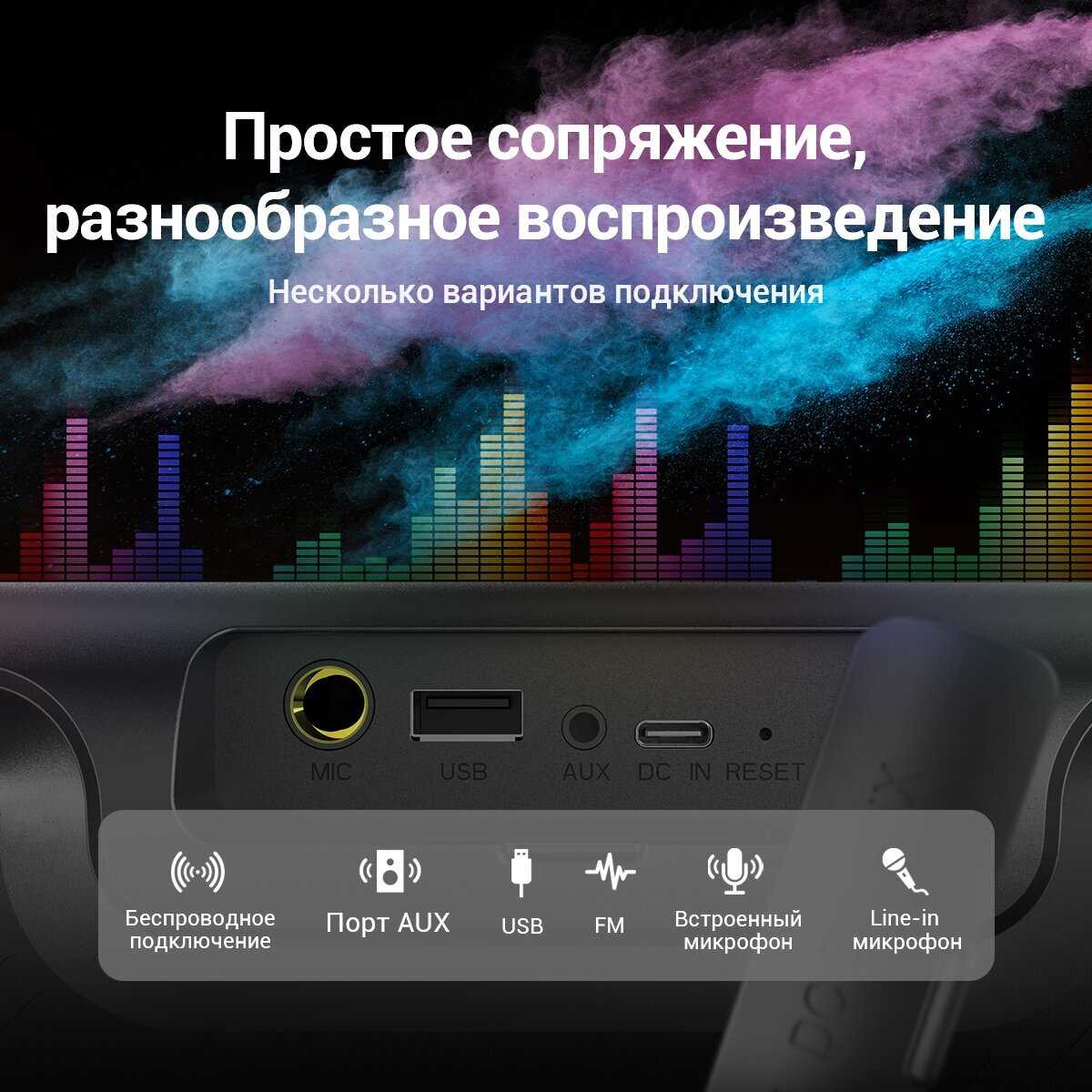 - + Хорошая колонка) громкая, подсветка красивая) хорошее соотношение цена/качество) чистого звучания и низких басов от нее ждать не стоит)