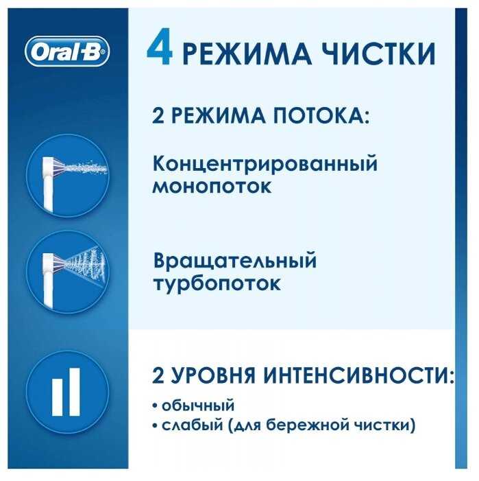 Искала себе портативный ирригатор для того чтобы брать с собой в дальние поездки, мой домашний ирригатор очень большой и брать его конечно неудобно. Остановилась свой выбор именно на этой модели ирригатора oral-b , потому что он удобный, лёгкий и отлично справляется с очищением между зубами и удалением пищи. У ирригатора есть два режима работы и два уровня подачи воды. С учащение моих Зубов он справляется отлично, а также не занимает много места так что спокойно беру с собой его в отпуск и в командировке. Цена у него не высокая и качество сборки и функционал замечательный.