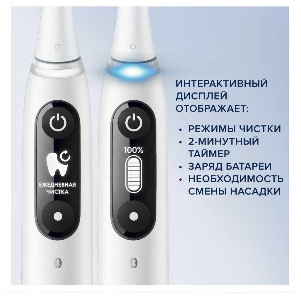 - Совместимость с 7 типами насадок, включая Ortho Care для брекетов.