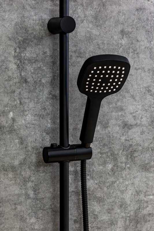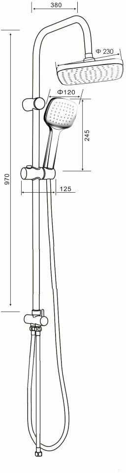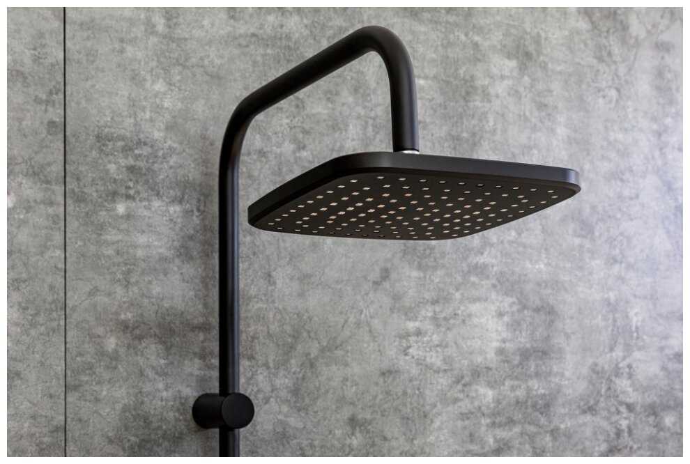| Дополнительная информация : | покрытие черный матовый, высота стойки для душа: 970 мм, диаметр душевой лейки: 120 мм, длина верхнего душа: 265 мм, ширина верхнего душа: 265 мм |