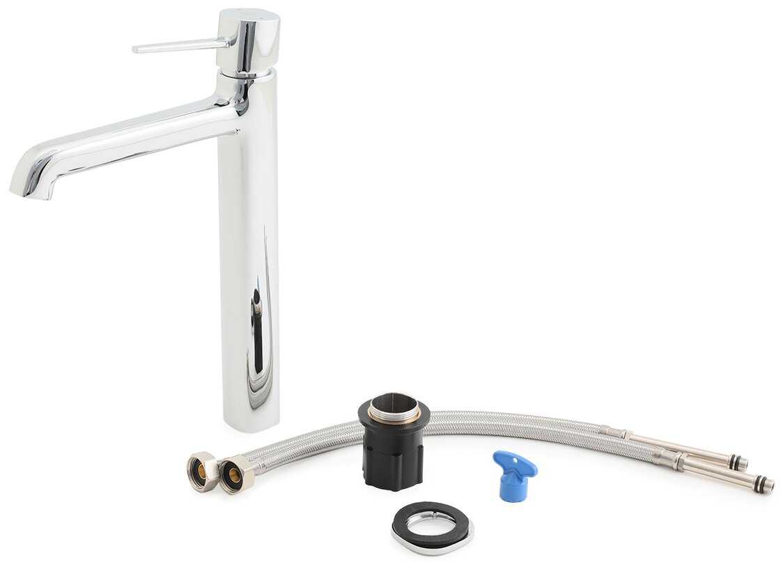 Высокий, удобный в использовании смеситель. Сделан очень качественно, выглядит красиво. Работает не шумно, монтаж у него удобный. Размеры у него оптимальные. Высота излива 21,5 см. Нигде ничего не подтекает, вода льётся с хорошим напором. Работает всё исправно. Думаю, что прослужит он долго. Производство, кстати, у него немецкое.