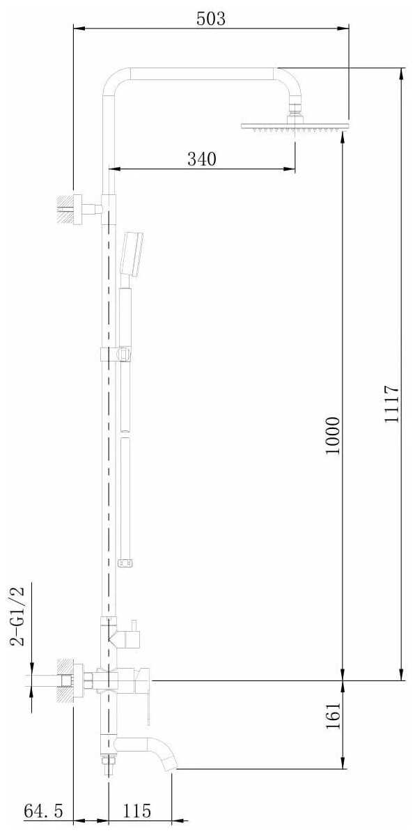 | Высота стойки для душа : | 1117 мм |
