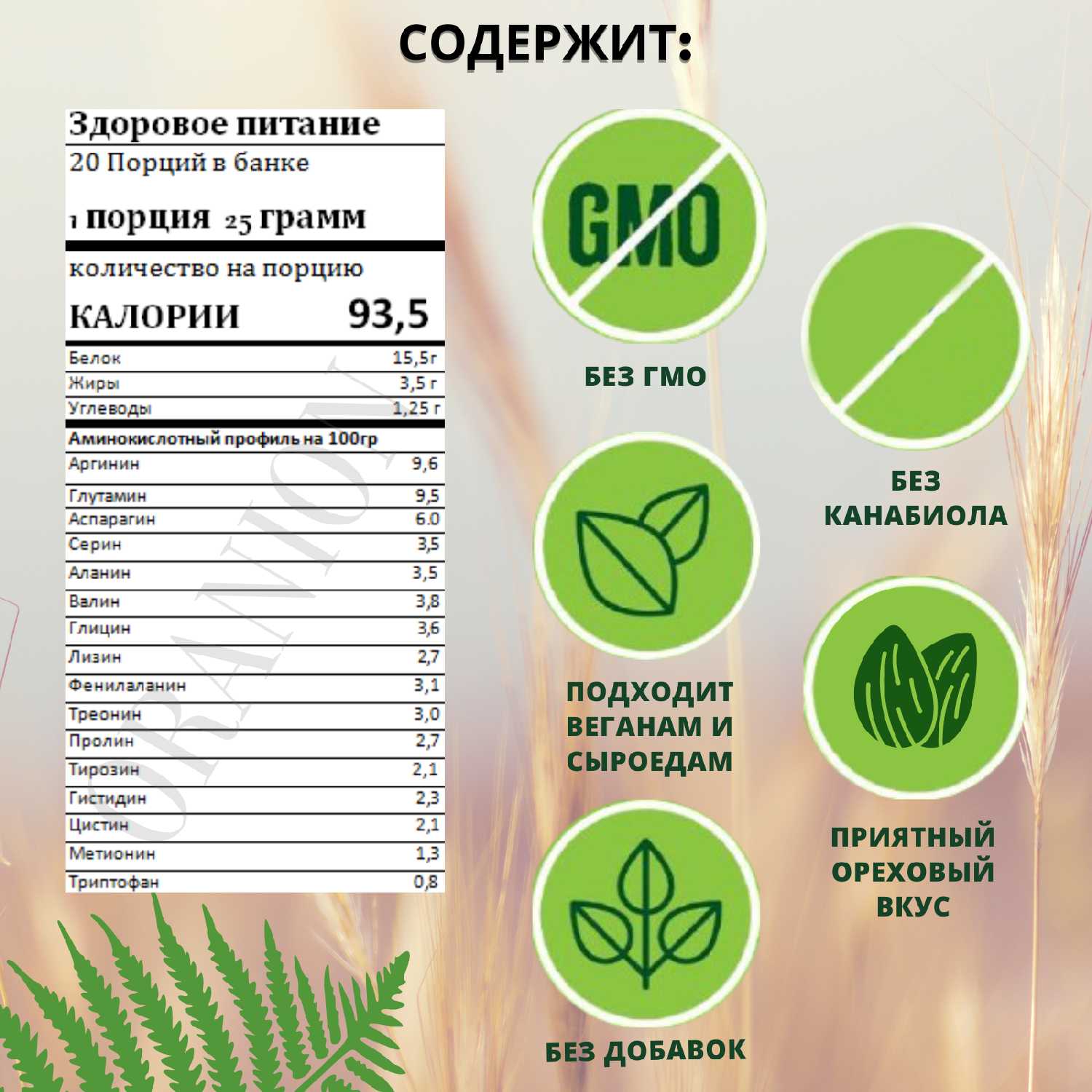 Дополнительная информация : | Преимущества протеина White Premium Oranion: ● Повышенное содержание сырого белка — 62, 2% на 100 г ● Конопляны белок хорошо усваивается ● Снижает холестерин, улучшает работу сердечно-сосудистой системы ● Улучшает функцию иммунной системы |