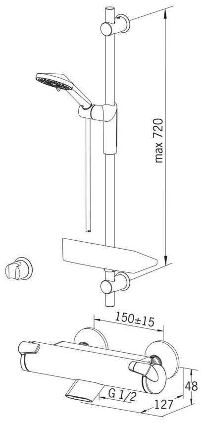 | Дополнительная информация : | высота стойки для душа: 1200 мм, длина верхнего душа: 257 мм, ширина верхнего душа: 197 мм |