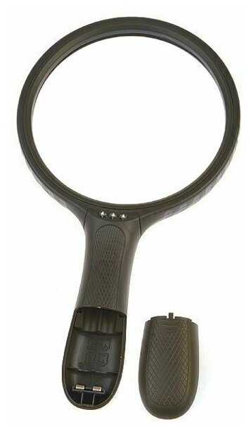 - + Лупа большого диаметра с светодиодной подсветкой. Уровень подсветки и кратность увеличения соответствуют размеру лупы. При необходимости можно использовать доп. линзу "нашлепку" с повышенной кратностью увеличения.