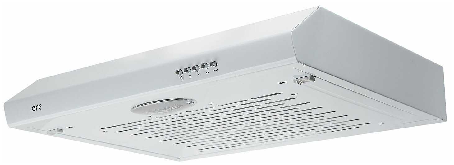 Обычная классическая вытяжка не очень высокой мощности. Для небольшой кухни самое то. Можно установить угольный фильтр ORE №1 и/или поставить универсальный. Легкий доступ для замены фильтра и лампочки. Не шумная. Крепеж и выходное кольцо в комплекте. Лампочку заменил на светодиодную. В эксплуатации месяц, покупал в леруа за 4 с копейками.