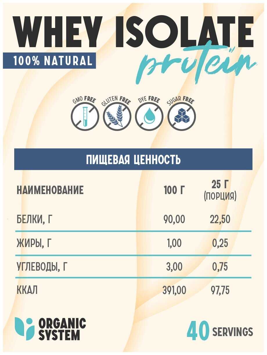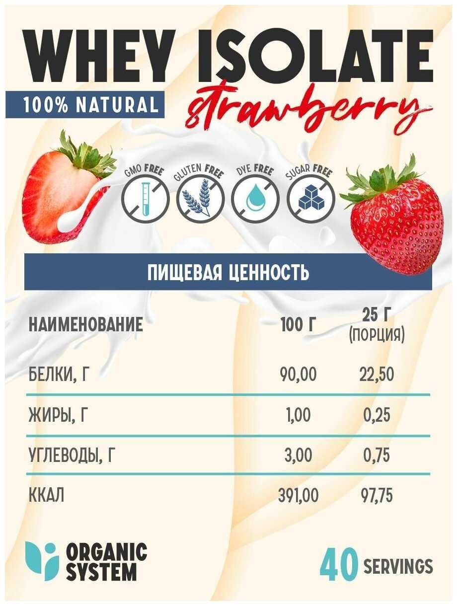 Производитель заявляет высокое содержание белка – 75.6 грамма на 100 граммов продукта. Сообщается также о наличии примерно 6 граммов жиров и 6 граммов углеводов на ту же массу. Часть пользователей считает такое количество жиров и углеводов оправданным для лучшего усвоения белка организмом. Другие же, ожидавшие от изолята практически нулевого содержания этих нутриентов, разочарованы и suspect наличие посторонних наполнителей. -
