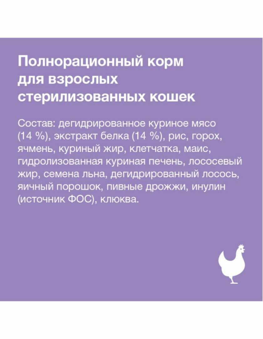 Особые потребности : | для стерилизованных/кастрированных, профилактика избыточного веса |