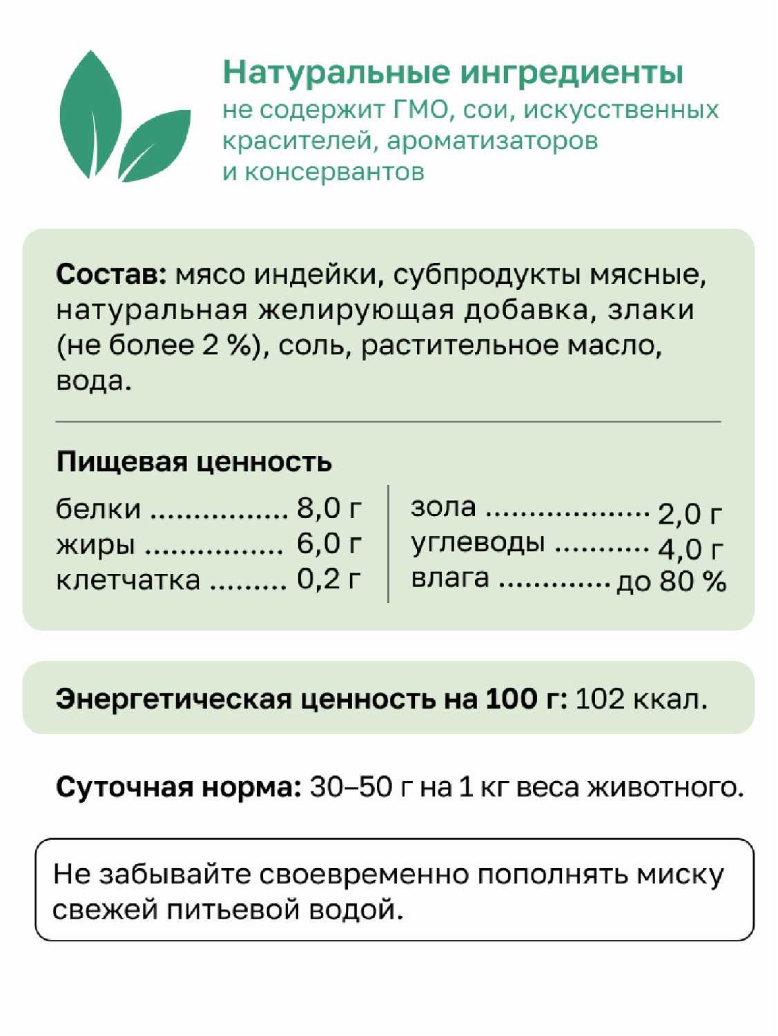 Достаточно стандартный выбор вкусов. Этот паштет с индейкой без резкого запаха. Так что всех всё устраивает