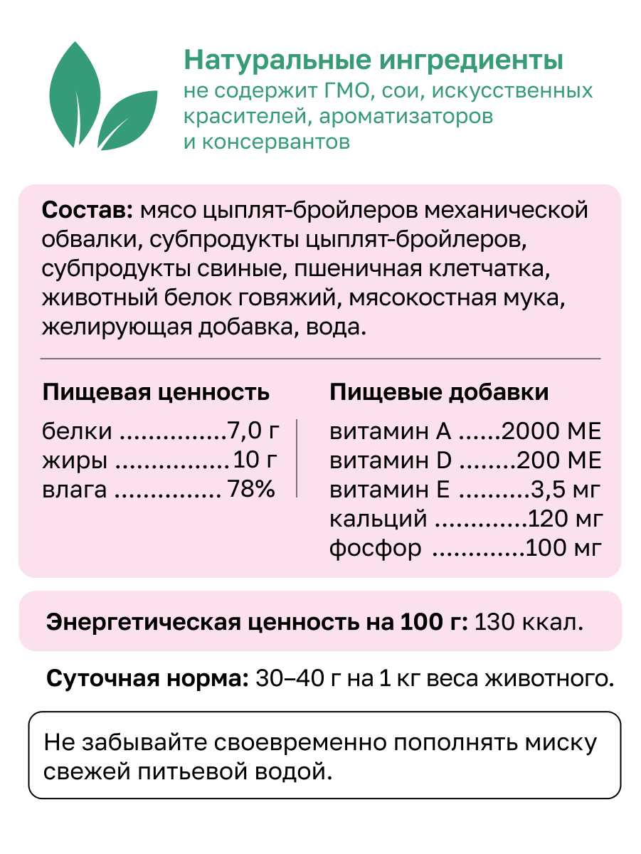 - + Отличный вариант для разнообразия рациона! Кошка ест с удовольствием, запах приятный, консистенция нежная. Состав натуральный, никаких проблем с пищеварением не было. Очень довольны этим суфле!