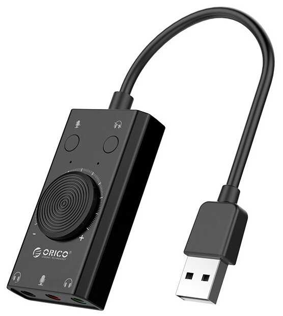 - + Как звуковая карта - отличная штука. Можно использовать проводную гарнитуру для телефонов - сразу и звук и микрофон, для разговоров по скайпу или дискорду, например.