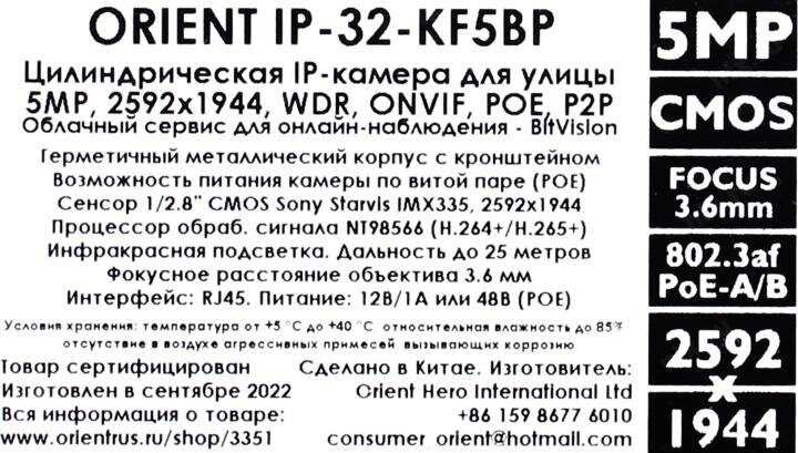 Отзывы о IP-камера Orient IP-32-KF5BP