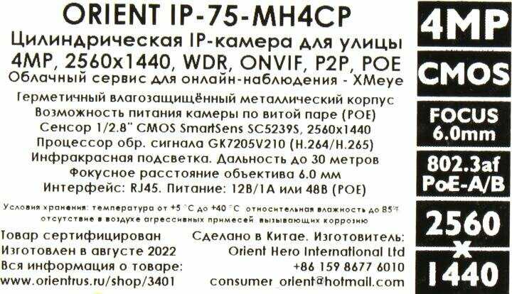 Отзывы о IP-камера Orient IP-75-MH4CP