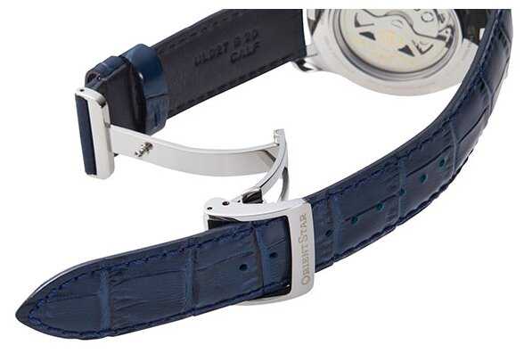 - + Интересный акцент на циферблате: секундная стрелка, цифра XII и эмблема Orient Star выполнены в золотистом цвете