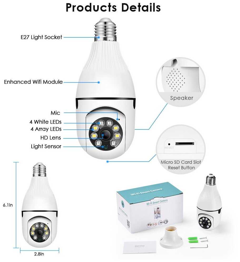 Отзывы о Wi-Fi IP-камера с микрофоном, 3MP, XMeye, 2.8 мм (~90°), динамик, microSD, питание 220В (E27) | ORIENT WF-306