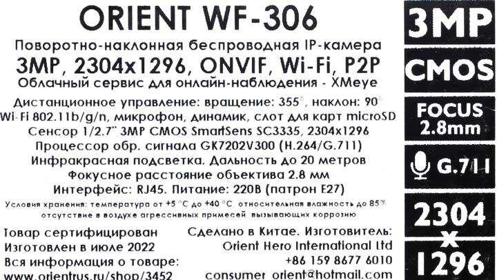 Отзывы о IP-камера Orient WF-306
