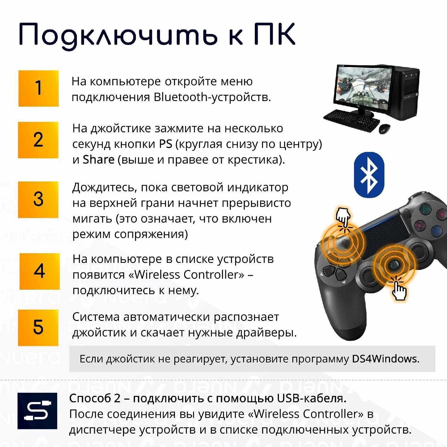 - Беспроводное подключение по Bluetooth к PlayStation 4, персональному компьютеру и мобильным устройствам происходит быстро и без дополнительных драйверов.