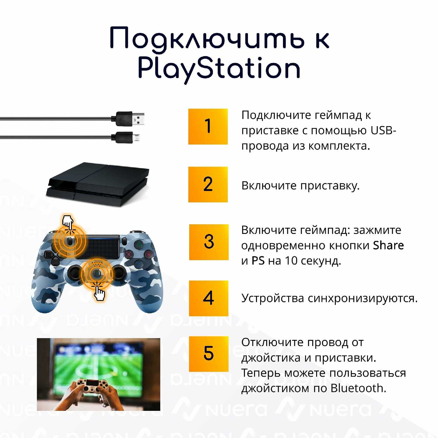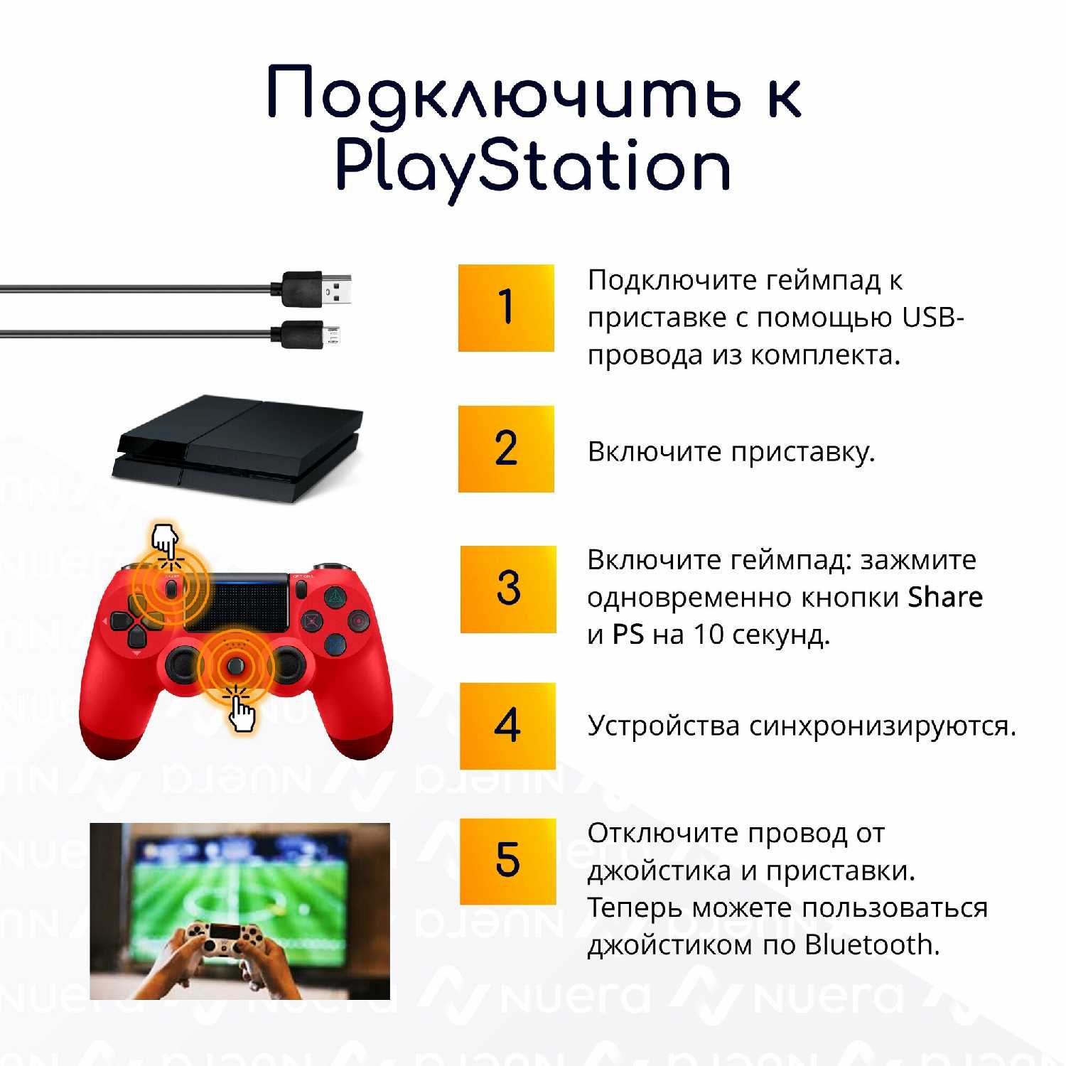 Геймпад успешно подключается и распознается консолью Sony, часто даже отображаясь в системе как оригинальный контроллер. Все основные кнопки, включая сенсорную панель и гироскоп, функционируют. Однако для стабильной беспроводной игры на PS рекомендуется использовать адаптер из комплекта, так как прямое Bluetooth-соединение с консолью может работать менее стабильно и иногда провоцировать кратковременные разрывы связи. -