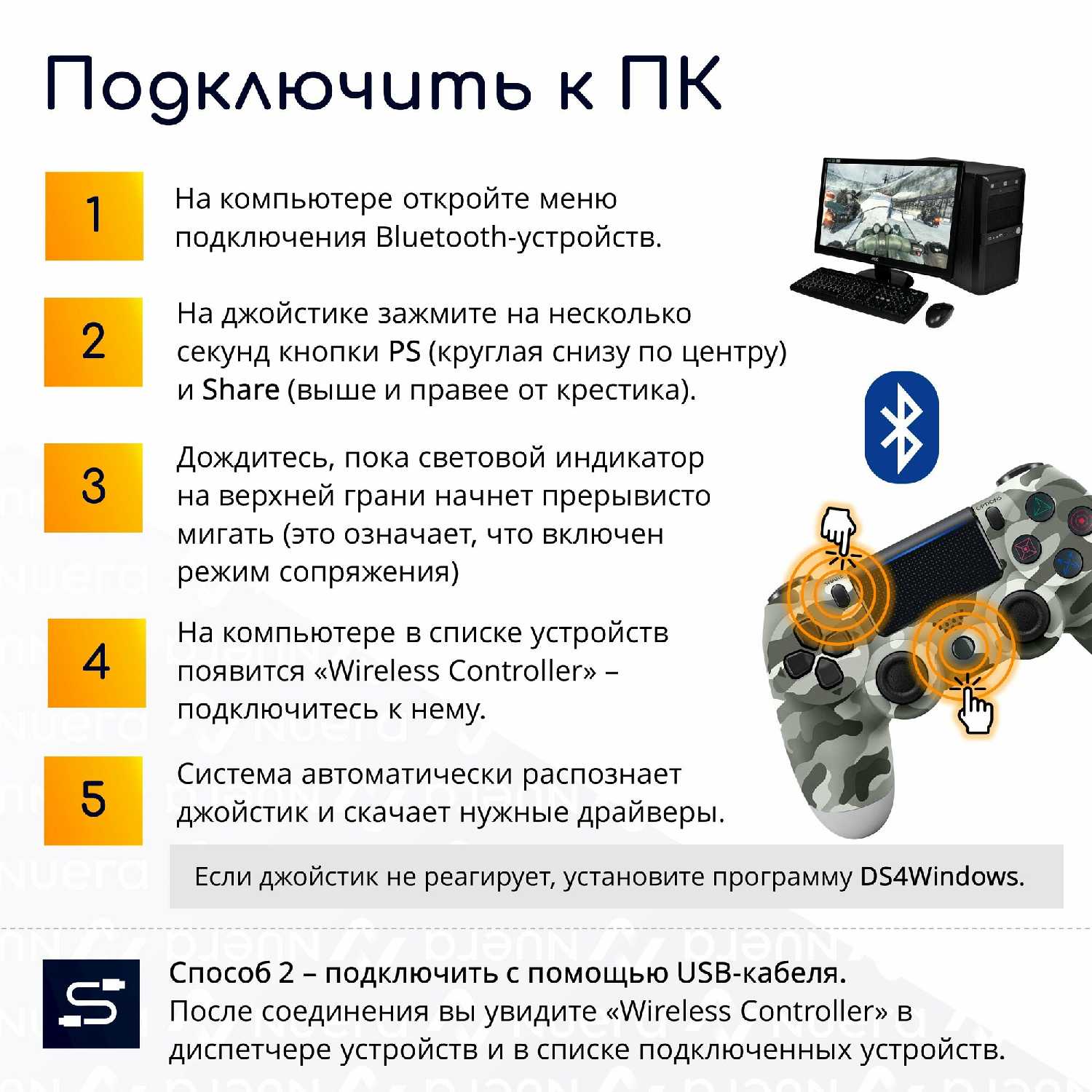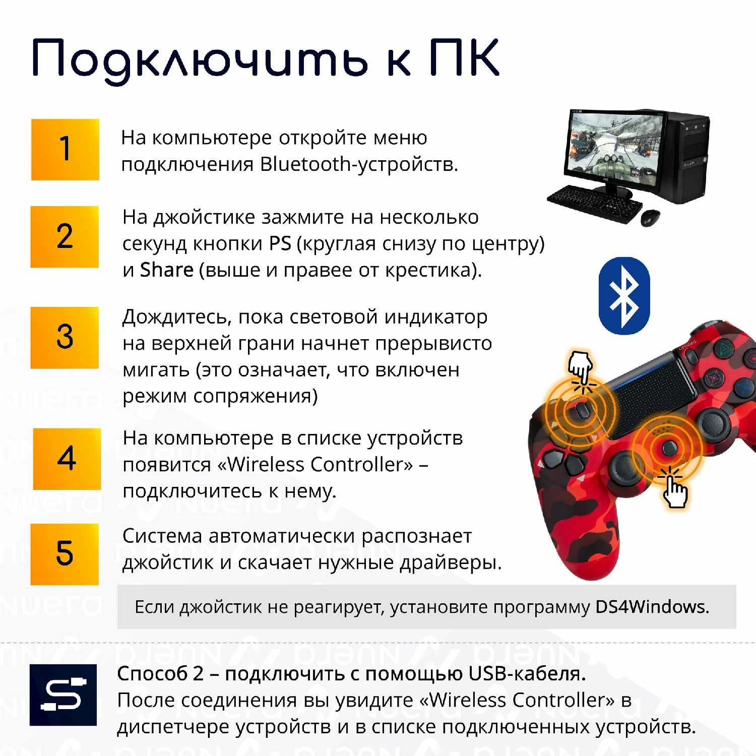 - Беспроводное подключение по Bluetooth к PlayStation 4, персональному компьютеру и мобильным устройствам происходит быстро и без дополнительных драйверов.