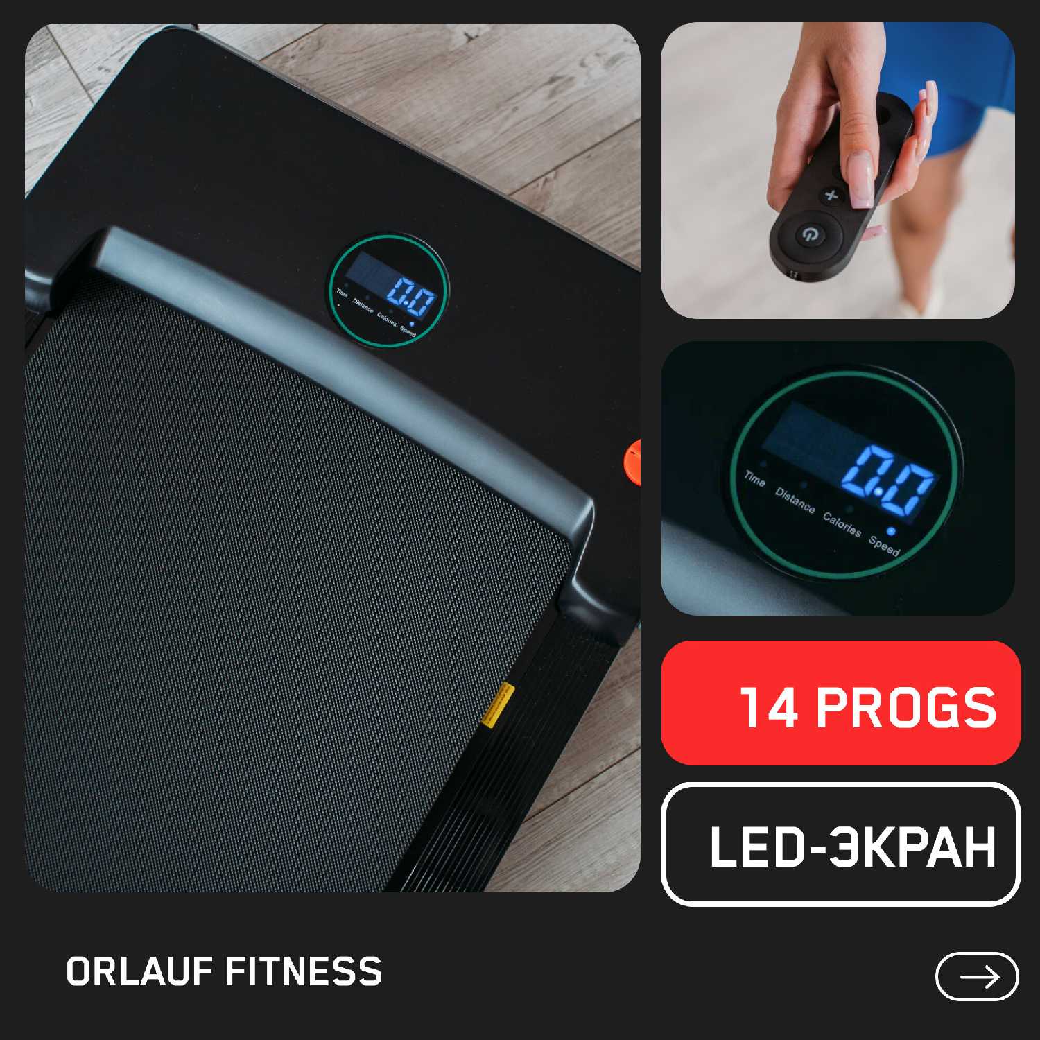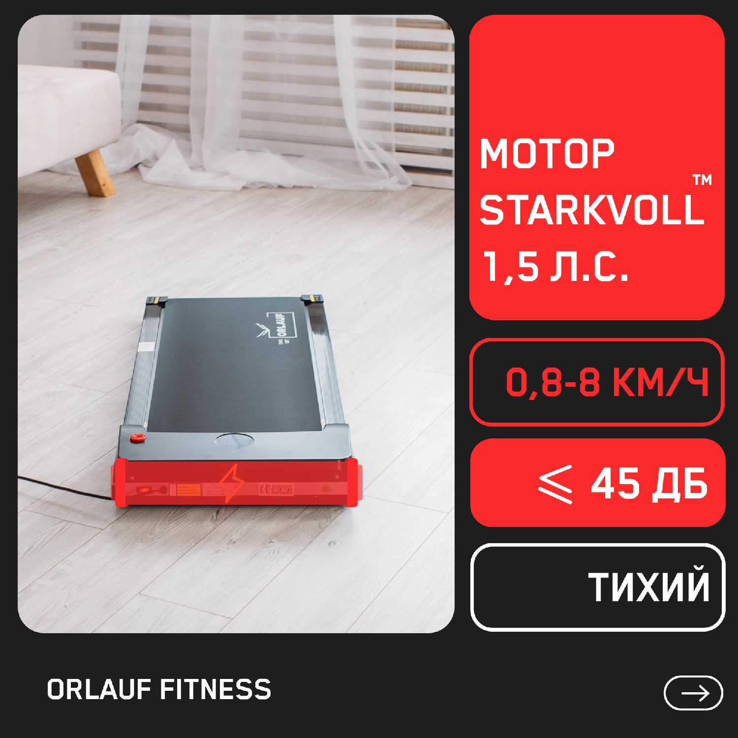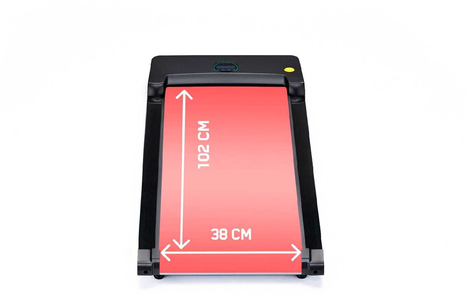 - Ширина бегового полотна 45 см обеспечивает комфорт при росте до 180 см, сохраняя минимальные габариты.