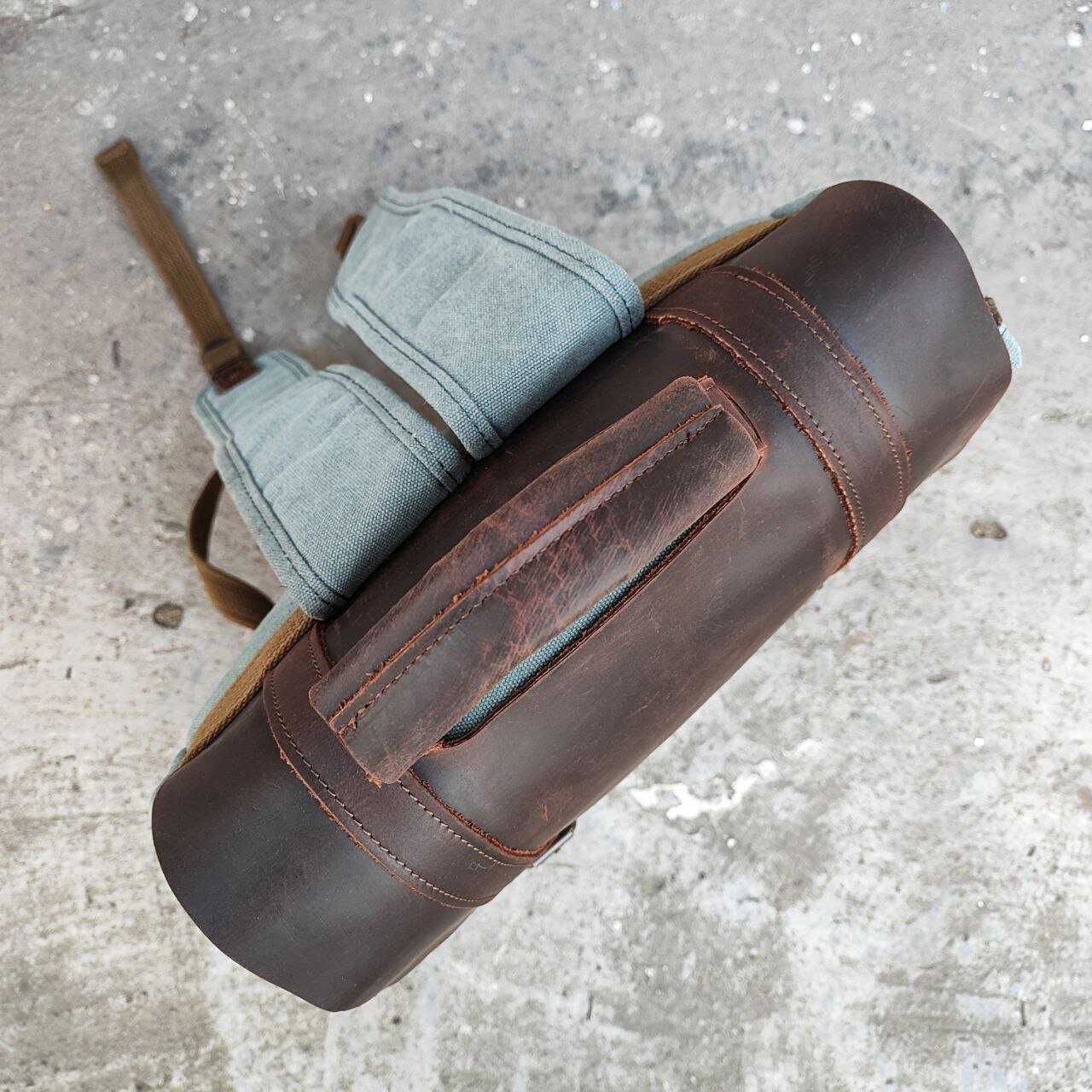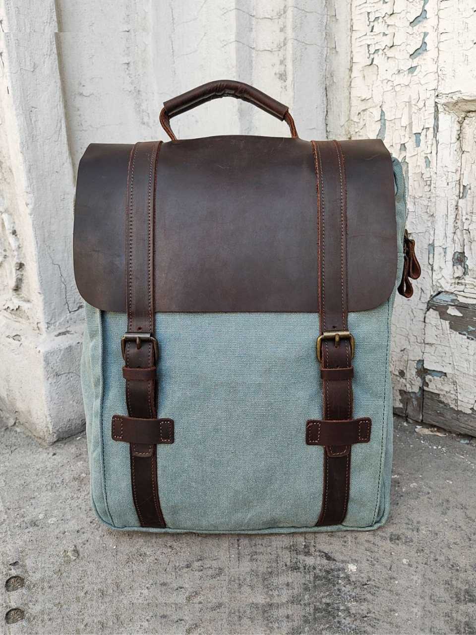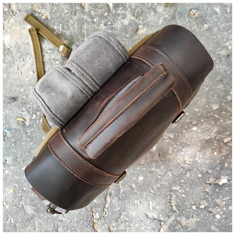 - - Это не минус, скорее замечание. Когда кожаная накидка откинута (она тяжеловата относительно всего рюкзака), то рюкзак падает, тк противовеса нет. И спина нежёсткая. Но рюкзак классный.