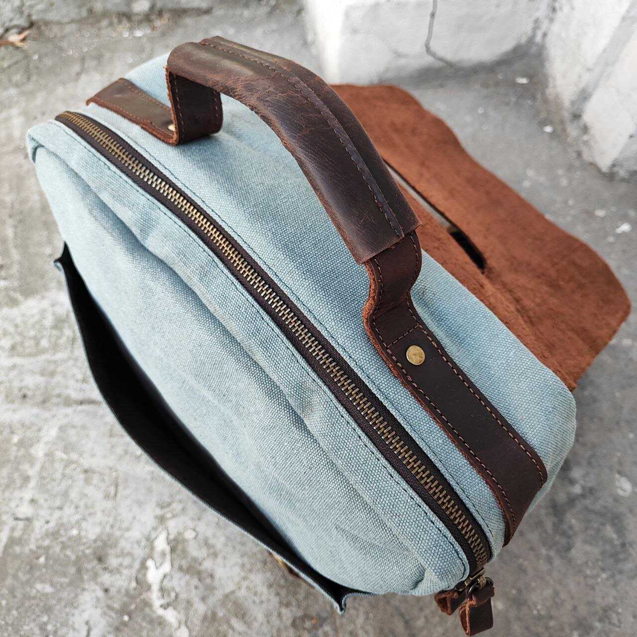 - + качество кожи и ткани на высоте, молния отличная, уверен долго прослужит. очень вместительный и глубокий