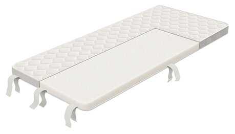 - + Достаточно плотный. Качественные материалы. Можно сворачивать. Присутствуют крепления - липучки для фиксации матраса на диване с механизмом раскладывания "Французская раскладушка".