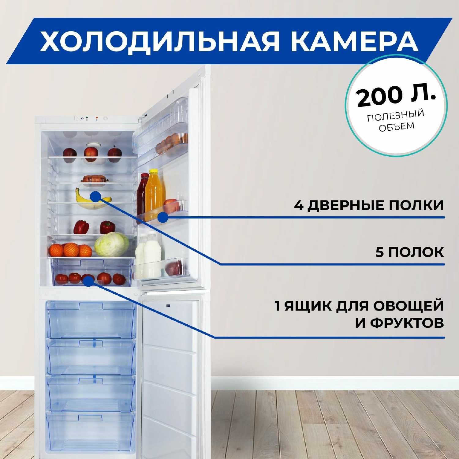 - объем холодильной камеры: 200 л